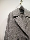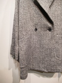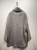 ニットソー素材(柄はヘリンボーン)、ドロップショルダー、ビッグシルエット、テーラードのフロントダブル、裏地なし、手洗い可能