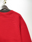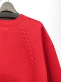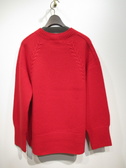 中細糸ニット クルーネック ドロップショルダー 裾はフロントアーチ型 後ろ長め 袖口、裾、ネック リブ編み タスマニアラムウール