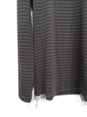 インナータートルカットソー ボーダー柄 ダークブラウンは紫 ミディアムグレーは黒 手洗い可能