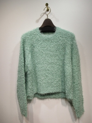 クルーネック 短丈裾 ラグラン袖 糸の中にシルバーラメ糸入り 手洗い可能