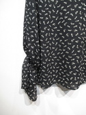袖ドロップ、袖口ベルスリーブ(途中ゴム入り)襟ぐりがフリル、後ろファスナー、靴のプリント、手洗い可能