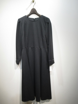 細かい千鳥、ウェスト切り替え、スカートフレア、裏地付き、後ろファスナー、袖口カフス(スリット入り)