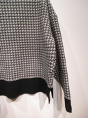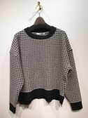 細かい白黒の柄模様 ドロップショルダー 裾は短め 袖口 裾 襟ぐりは黒のリブ 裾はスリット入 手洗い可能