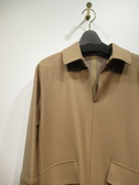 後ろファスナー、袖はドロップショルダー、袖口スリット入りで折り返しできます、フロントのポケットは飾りポケット、裏地付き、手洗い可能