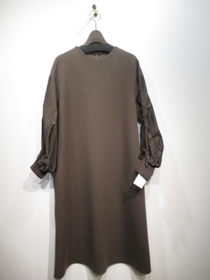 身頃と袖が異素材、袖山にギャザー紐デザイン、後ろファスナー、裏地なし、手洗い可能