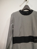 千鳥格子、ウェスト異素材(黒)、スカート部分フレア、袖口と襟ぐりも黒の異素材、後ろファスナー、裏地なし