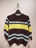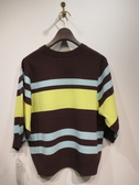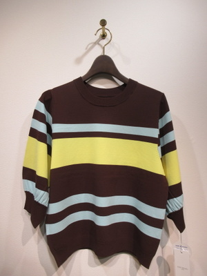 ※春物新作 黄色と薄いブルーの配色ボーダー柄 袖はややボリューム感あり 6分丈程の袖 袖口リブ 手洗い可能