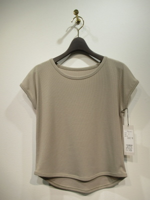 ※春物新作 テレコ素材のフレンチ袖カットソー 後ろ長め 手洗い可能