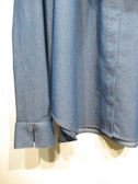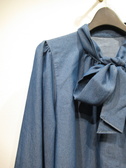 ※春物新作 ダンガリー生地のシャツ・ブラウス リボンタイはネックの後ろにボタンで止めることができる 取り外してリボンなしでも着用できます 前開き(比翼ボタン)袖カフス(スリット入り) 袖山とフロントにギャザーあり 第一ボタンはパール 手洗い可能