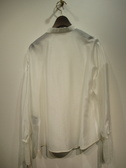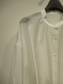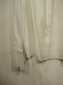 ※春物新作 ツヤのある薄手の生地 襟無しフロントギャザー 四角い飾りボタンがオシャレ 袖口はギャザーゴムでレースの生地を使用