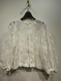 ※春物新作 ポリエステルレース生地のブルゾン 前ファスナー ドロップショルダー 袖口 裾ゴム入り 後ろ身頃切り替え ギャザーいり 手洗い可能