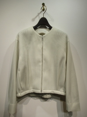 メッシュ生地のブルゾン、前後差有り、コクーンシルエット、ID:118816と同じ素材を使用していますがこちらのブルゾンのほうが身幅はすっきりとしています、裾は総ギャザーゴム、前ファスナー(シルバー)手洗い可能