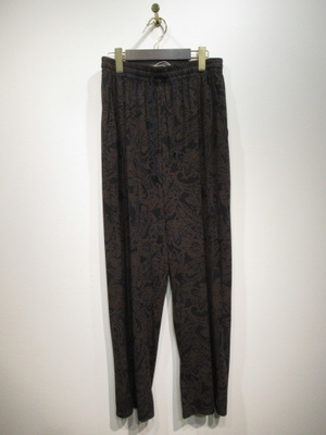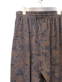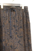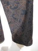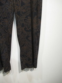 皺になりにくい上質ポリエステル生地を使用したソフトワイドパンツ 黒地にダークブラウンのペーズリー柄(輪郭にブルーのライン)裏地無し 脇ポケット ウエストはギャザーゴム+紐調整 手洗い可能 同生地のワンピース有り(ID:118940)