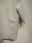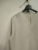 細かいギンガムチェック生地 袖は6分丈ほど袖筒広め 袖口ボタンで上げてますが留めなくても良い 裾は前後差脇スリット 手洗い可能