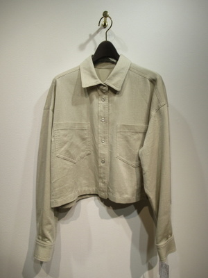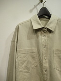 テンセル生地のジャケット風のシャツ、フロントに大きめの張りポケット、襟はステンカラー、フロントボタンはシルバー、袖口カフスもシルバーボタン、手洗い可能手洗い可能
