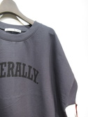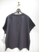 スクエアデザインのカットソー、ロゴ入り、フレンチスリーブ、白はブラウン系・チャコールは黒のロゴ文字、手洗い可能