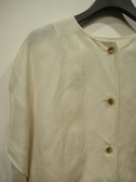 襟無しコクーン型、シャツの羽織、袖はドロップした袖付で肘が隠れるほどの長さ、後ろ下がり、手洗い可能、アームが広めなのでインナーは必須です
