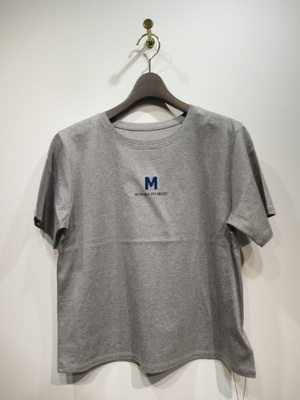 プレーンな半袖カットソー フロントロゴ刺繍 グレーはネイビーの糸のMの字を刺繍 白はベージュ系のEの字を刺繍 手洗い可能