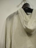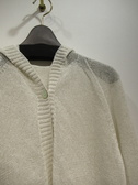 フード襟のカーデ(フロント一つボタン) 袖はラグラン 洗える和紙糸使用 袖口裾 フードの周囲リブ編み 手洗い可能