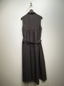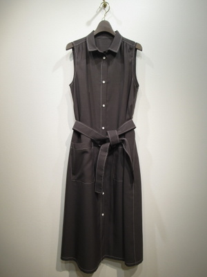 ステンカラー ノースリーブワンピース フロント前開き(白いボタン)白のステッチ キャミソール付き サッシュベルトあり ただベルト通しはなし 後ろは切り替えからギャザー 手洗い可能