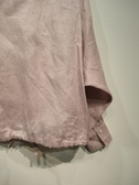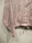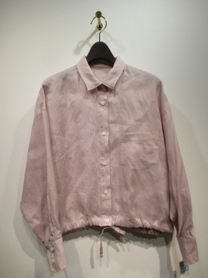 麻100%のカジュアルシャツ、程よい透け感あり、裾はドロスト仕様、胸元ポケットデザイン、ドロップショルダー、やや短丈、手洗い可能