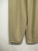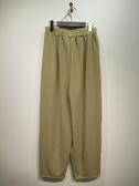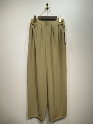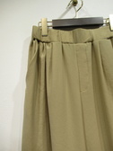 裏地なしのさらっとしたポリエステル生地のパンツ、ソフトカービーデザイン、ウェスト幅広ゴム入り(内側に紐調整)、脇ポケット、センターにダーツが入り裾幅をすぼめています、手洗い可能
