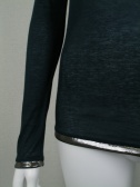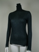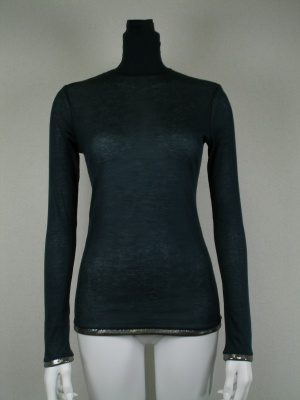 定番のタートルネックカットソー 裾と袖口に箔の異素材でトリミング 黒と深いグリーン色をご用意しました