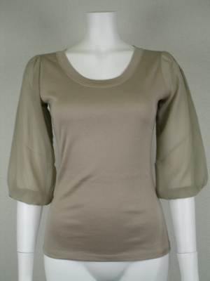 袖は2枚あわせ(シフォンはポリエステルで内側はナイロンネットを使用)袖がまとわり付くのを緩和する、サイズ38.40で黒とベージュ