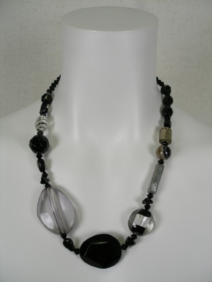 グラスビーズと合成樹脂ビーズのネックレス。