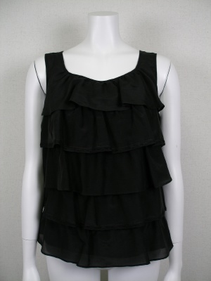やや光沢のある軽い素材で、前身ごろのみティアードになっています。