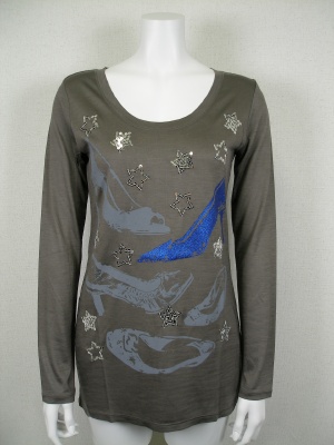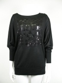 ハイヒールをデザインした図柄をスパンコールで仕上げた、ややゆったりした カットソー。