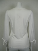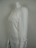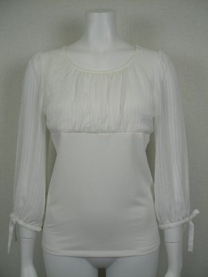 身ごろの切り替えはカットソー。袖のふんわり感とリボンがお洒落。