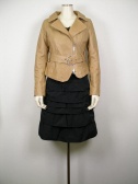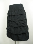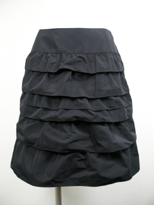 シャカシャカしたハリのある素材のティアードスカート。裏地付き。