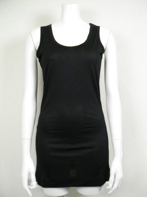 ロング丈のノースリーブカットソー。着まわしやすいシンプルなデザインです。