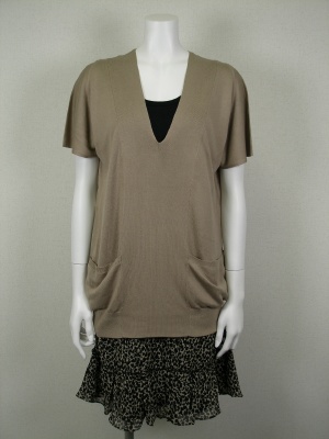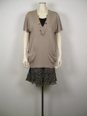 インナーは黒のノースリーブにミニスカートを付けたようなデザイン。ルーズなVネックニットとの2点セット。