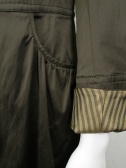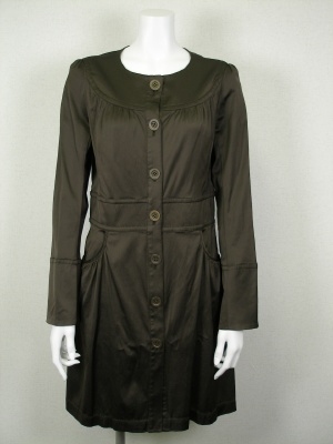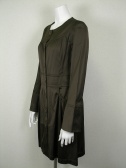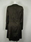 光沢のある薄手のコート。前を閉じるとワンピース風です。裏地はストライプなので腕まくりをしてもカッコイイ。