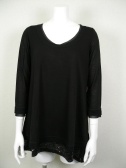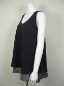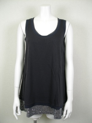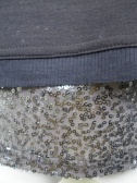 Aラインカットソーの裾からスパンコールがのぞきます。襟ぐりにはシフォンが。