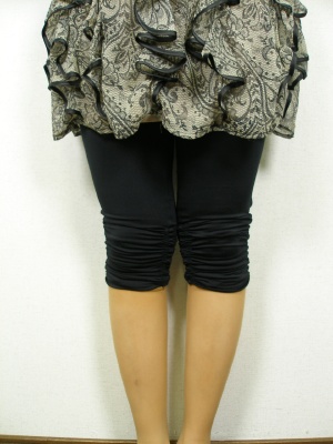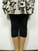 裾にクシュッとギャザーを入れた6分丈レギンス。膝下辺りの丈です。
