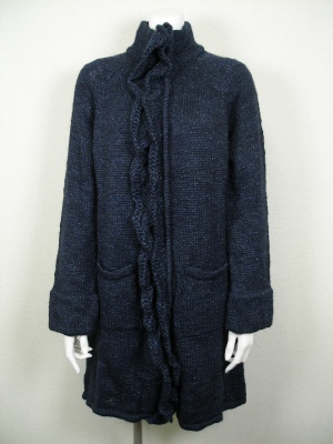 前立てのフリルがかわいいロングニット。フロントはホック留めです。裏地無し。