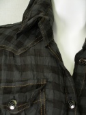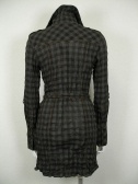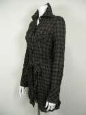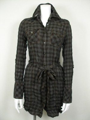 シワ加工のロング丈シャツ。ブロックチェックと渋めの色が秋らしい。袖はロールアップして留められます。衿にはワイヤー入り。