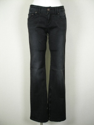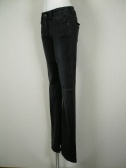 ウォッシュされたブラックデニムのブーツカット。フレアーの内側にはジッパーでアクセント。ストレッチの効いた素材です。