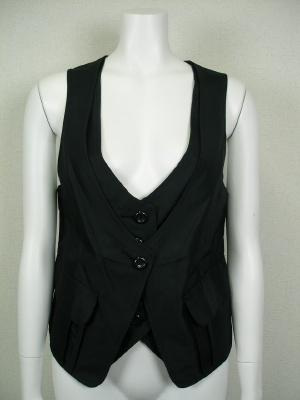 前身ごろだけ、ベストを2枚重ねたデザイン。後ろはストライプ柄。