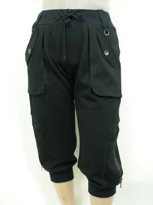 全体にややゆったり、裾はキュッと絞ったサルエルパンツ。ウエストはゴムでタック入り。