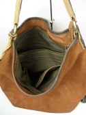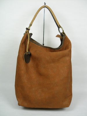 クタッとした牛革のバッグ。ストラップは2種類あり付け替えも簡単。天ファスナーで中は2部屋に分かれていて使いやすいデザインです。
