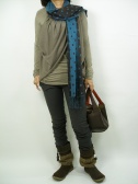 膝上から裾までギャザーを寄せ、クシュクシュさせています。ピッタリタイトなので、チュニックにも合わせやすい。
