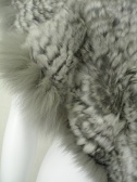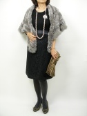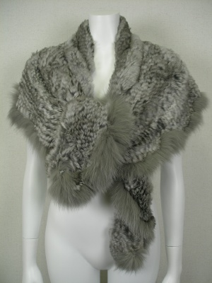 ラビットファーにフォックスでアクセントをつけたショール。前で結べばケープ風、肩にかけるだけでもマフラーのように巻いてもOK。