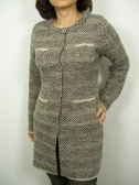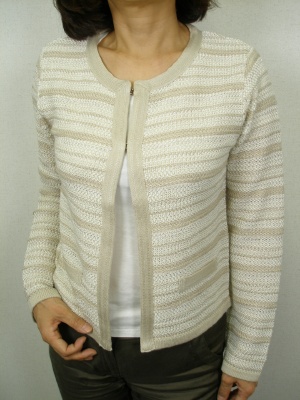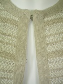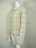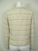 裏地なしのニットジャケット。控えめに入ったラメ糸が上品です。フロントはカギホック2つ。