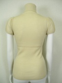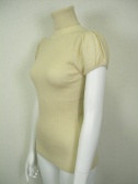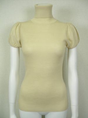 身ごろは柔らかくフィットするリブで、パフスリーブのタートルニット。ボリュームスカートにもよく合います。