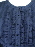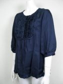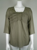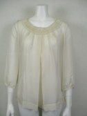 シルク素材で上品な光沢のあるブラウス。ビーズやレース使いで繊細なイメージに。