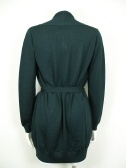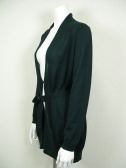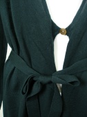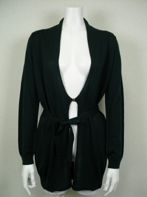 サラリとした素材で羽織りやすいロングカーディガン。前のボタンは一つでベルトは外せます。